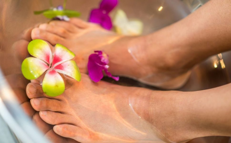 – Vårdande fotbad som mjukar upp hud och naglar